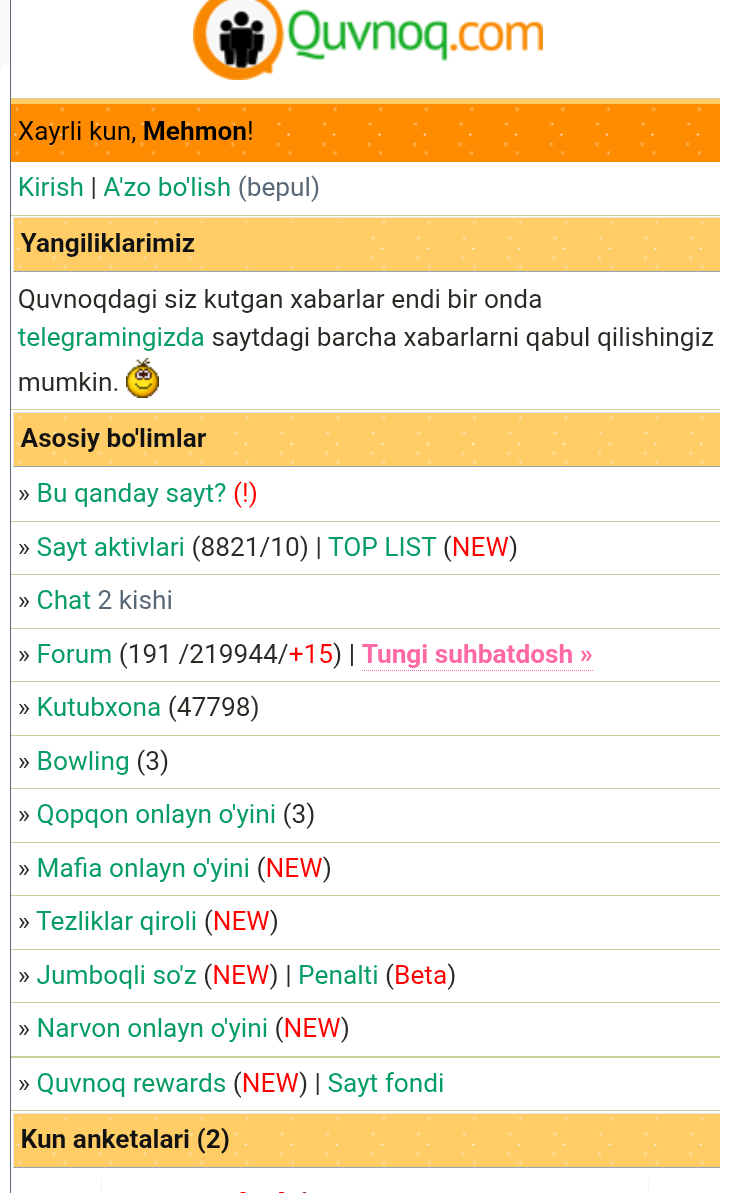 Скрипт полностью на узбекском языке. Весь функционал рабочий.